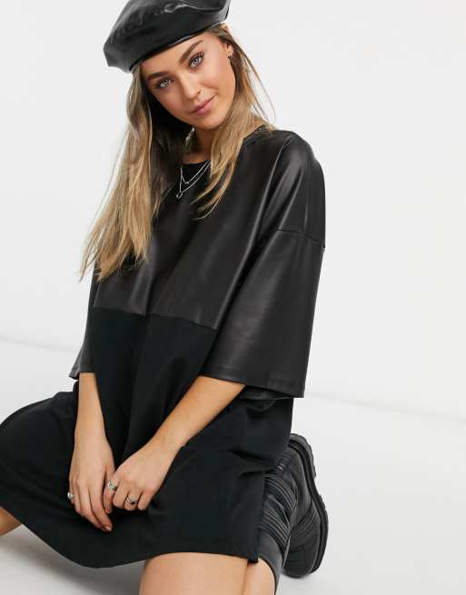 Leather Look T Shirt Dress